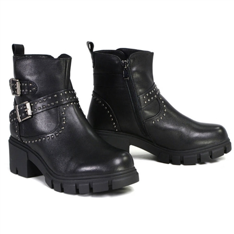 Unleash your inner road warrior with the Milwaukee Siren studded motorcycle boots. Crafted from genuine leather, these boots feature studded accents and adjustable side straps that add a distinctive edge to your riding ensemble. The cap toe design and raised heel provide a classic biker silhouette, while the anti-slip sole ensures stability on every journey.